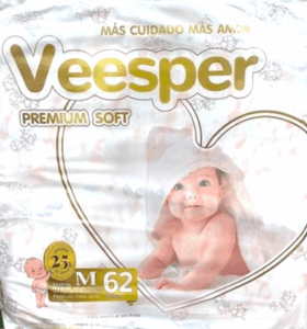 Pañal veesper talla M contiene 62 pañales……………..venta x un paquete
